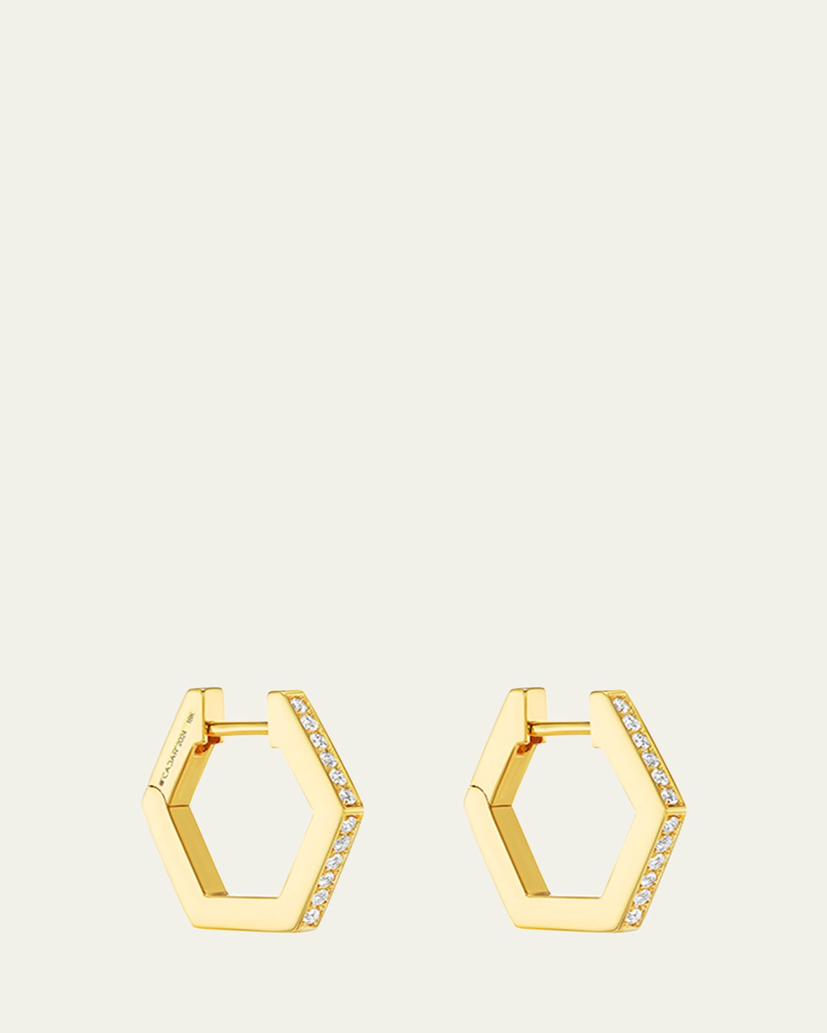 CADAR hoop earrings Approx. 15mm diameter Polished 18karat yellow gold Round white diamonds 0.14 total diamond carat weight Snap closure for pierced ears Made in Portugal