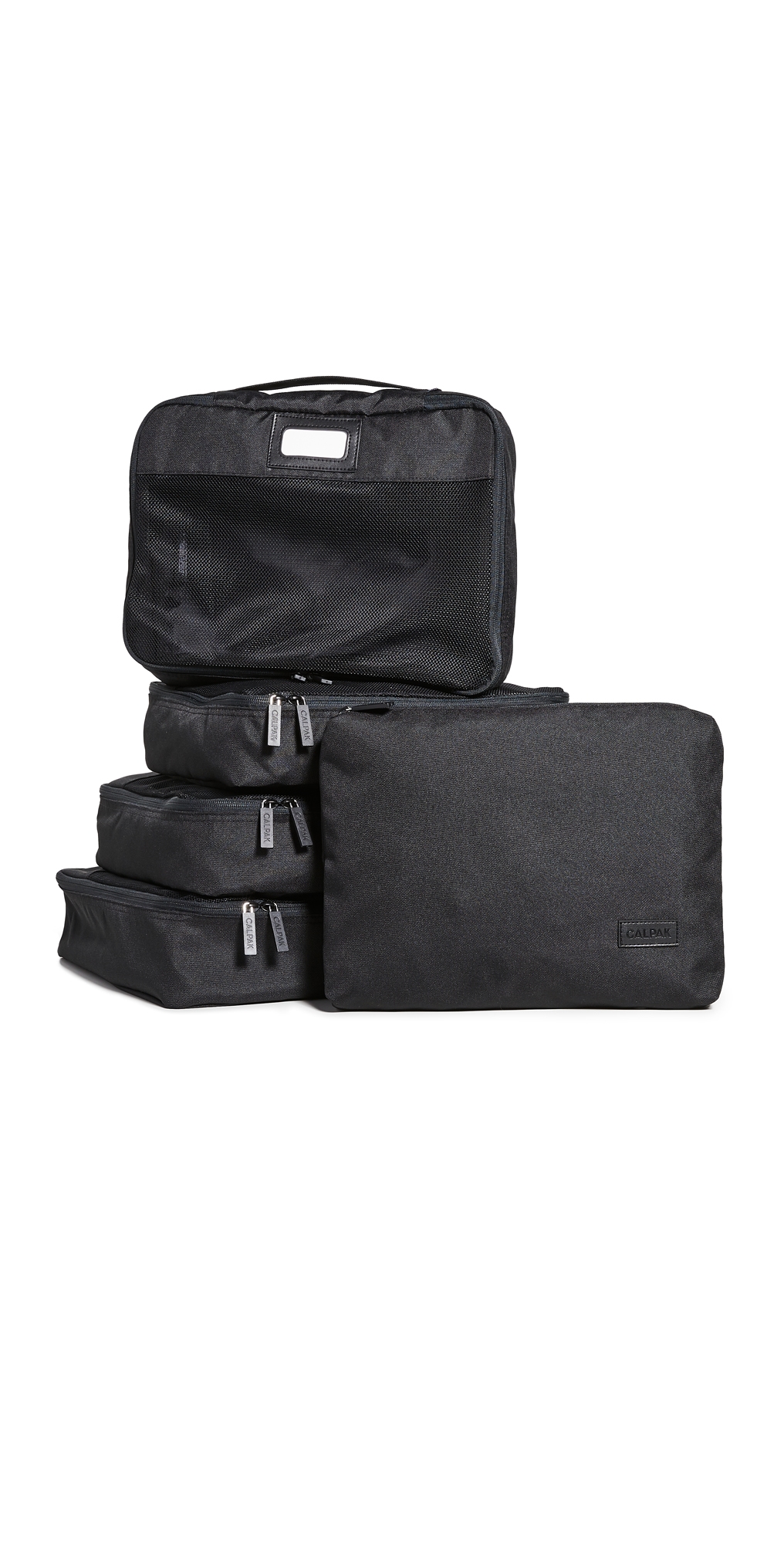 Fabric: Canvas. 2 small packing cubes, 1 medium packing cube, 1 large packing cube, and 1 water resistant envelope pouch. Mesh front. Personal I.D. tag. Zip at top. Zip back pockets. Imported, China. Measurements: Envelope: Height: 13in / 33cm Length: 10in / 25.5cm Depth: 1.5in / 3.5cm Small: Height: 12in / 30.5cm Length: 8.75in / 22cm Depth: 3in / 7.5cm Medium: Height: 15in / 38cm Length: 11in / 28cm Depth: 3in / 7.5cm Large: Height: 17in / 43cm Length:12in / 30.5cm Depth: 3in / 7.5cm