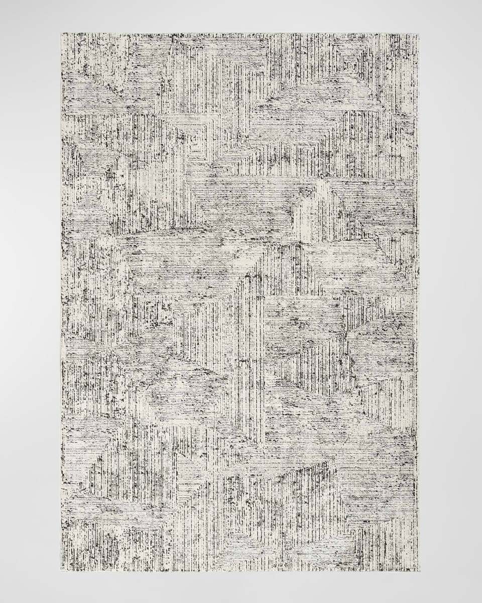 This abstract rug from Nourison and Calvin Klein brings minimalist energy to your home. An overlapping linear pattern, presented in cream and black tones, is enhanced by subtle texture variations and a vivid sheen. Handcrafted of polyester with latex backing Rug measures approx. 7'10" x 9'10" High pile with serged edges Rug height: 0.5" Item Weight (Lbs.): 37.0 Vacuum regularly; professional clean only Size is approximate; we recommend use of a rug pad (not included) Imported