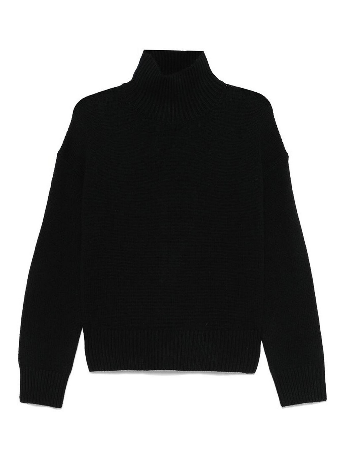 Construction en tricot mélangé noir, col haut, épaules, manches longues, bordure côtelée