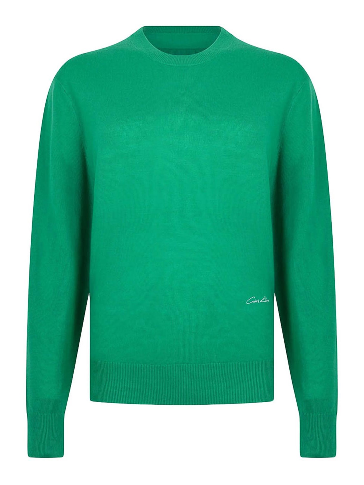 Col rond emblématique vert, manches longues, ourlet côtelé, poignets côtelés
