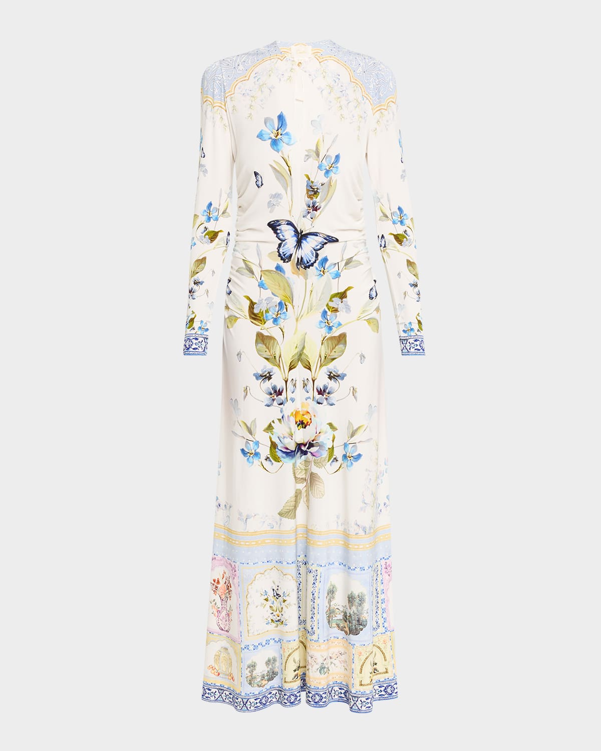 Handcrafted from gathered jersey, this longline dress by Camilla is printed with exclusive Botanical Ballads print showcasing mixed florals and butterflies High neckline with keyhole detail Long sleeves Full length Bodyskimming silhouette Front buttonandloop closure Rayon/spandex Dry clean Imported