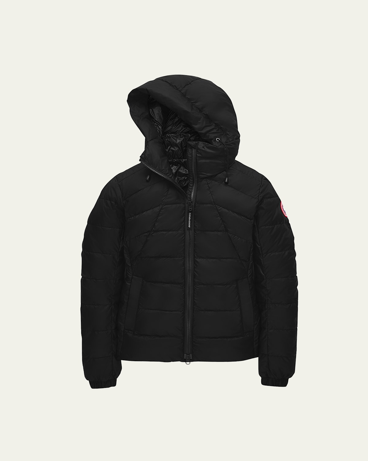 Canada Goose "Abbott" packable hoodie in windproof and waterresistant material. From size S length: 24.8" from shoulder to front hem amp; length: 27.5" from shoulder to back hem Drawstring hood; reflective details at back. Long sleeves; elastic cuffs. Underarm gusset for range of motion. Twoway zipper at front. Two side slit pockets. One interior pocket. Standard silhouette. Hiplength hem. Nylon shell/lining. 90/10 duck down/feather 750 power fill. Machine wash. Made in Canada.