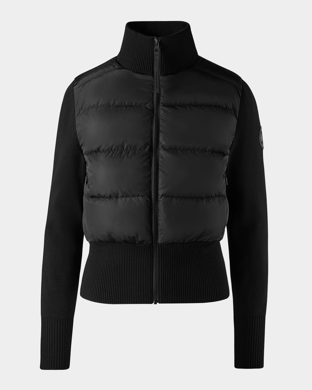 Designed with functionality in mind, the "HyBridge®" jacket by Canada Goose features quilted downfilled panels with merino wool sleeves and ribknit trim for a modern silhouette without compromising warmth. Features a signature logo patch on the left sleeve Stand collar; zipfront Long sleeves Side zip pockets Classic fit Wide ribbed hem Merino wool Fill: Down/feather Dry clean only Imported