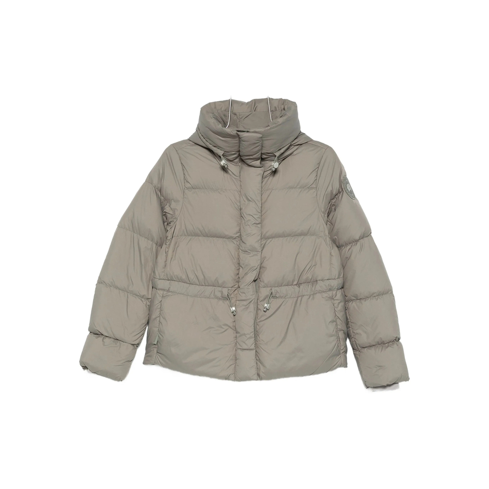 sage green padded design drawstring waist high neck sleeve logo-patch welt pockets