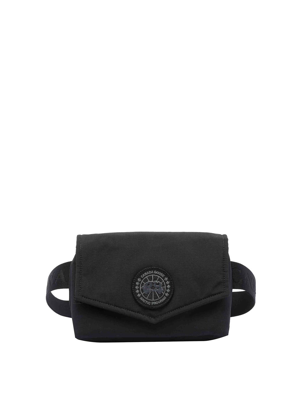 Sac de taille noir Canada Goose, poche ouverte zippée et clip, bandoulière ajustable, logo du créateur, couleur du créateur: noir