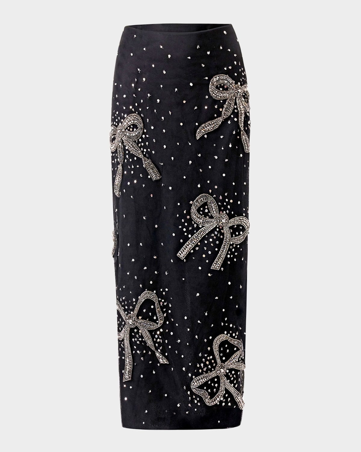 Carolina Herrera skirt embellished with bow beading High waist Hem falls below the knee Skirt falls straight from hip to hem Centerbsck slit hem Invisible back zip Nylon/polyamide Dry clean Imported