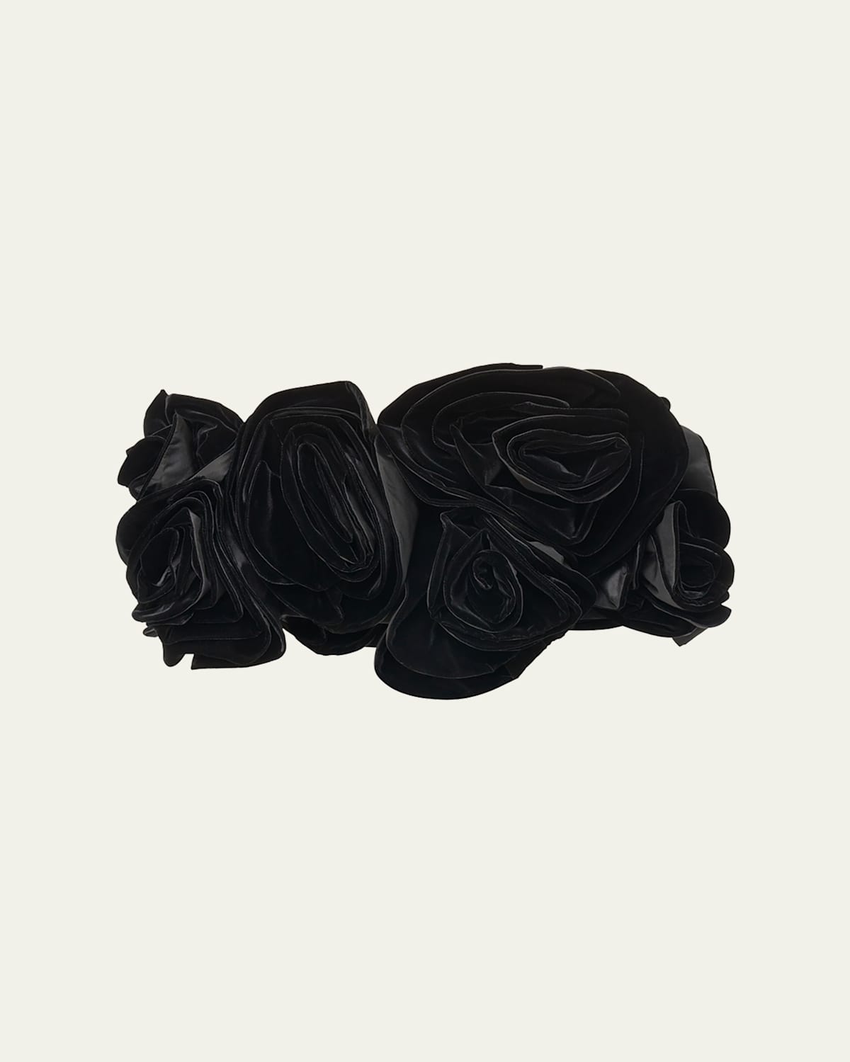 Carolina Herrera top featuring draped flower applique Offtheshoulder neckline Short sleeves Fitted Cropped length Hidden closure Rayon/cellulose acetate/cupro/polyurethane Dry clean Made in USA