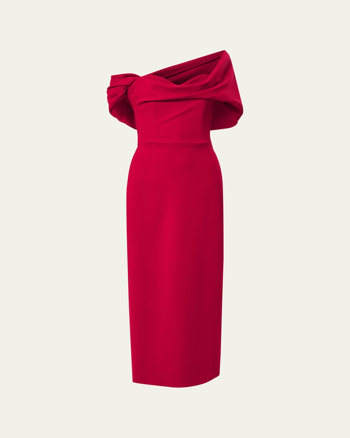 Sculpted for soirée perfection, this Carolina Herrera cocktail dress features an elegantly draped offtheshoulder neckline and a structured bodice that skims a figureflattering silhouette Offtheshoulder neckline Short sleeves Sheath silhouette Tea length Walking vent back Back zip Virgin wool/elastane Dry clean Made in Italy