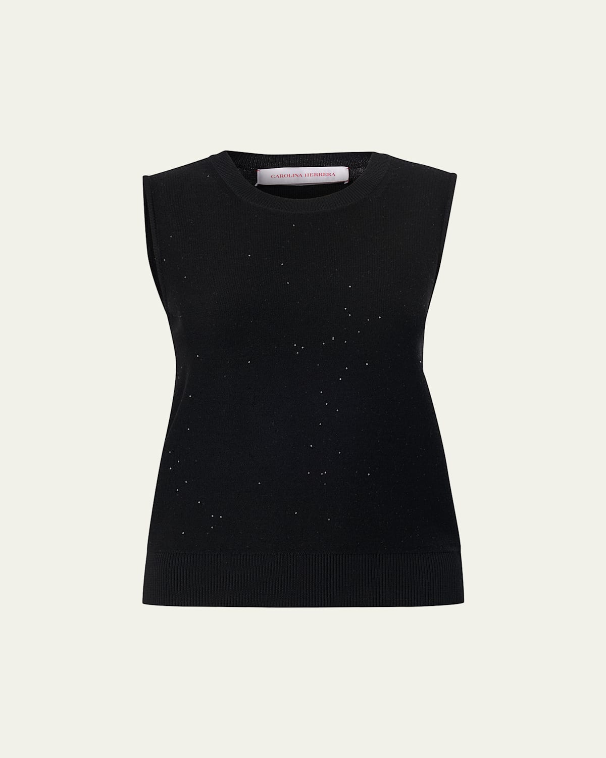 A sophisticated staple, this Carolina Herrera tank top is scattered with micro sequins for subtle shimmer Crew neckline Sleeveless Hip length Fitted Pullover style Virgin wool/polyester Dry clean Imported