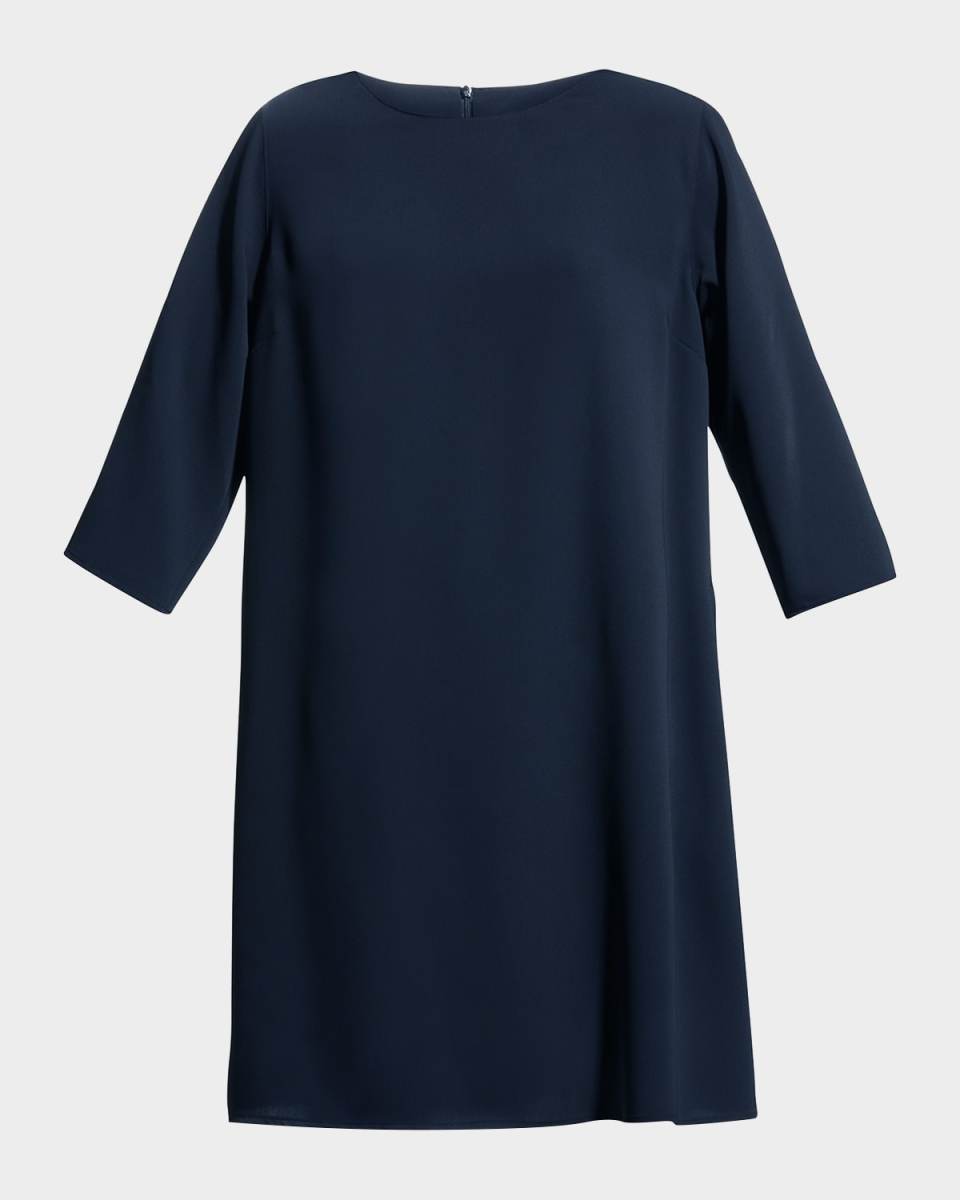 Caroline Rose "Crepe Suzette" easyfitting dress in solid crepe Round neckline 3/4 Sleeve Side seam pockets Hem hits around the knee Slight Aline silhouette Center back zipper Polyester Dry clean Made in USA from imported materials