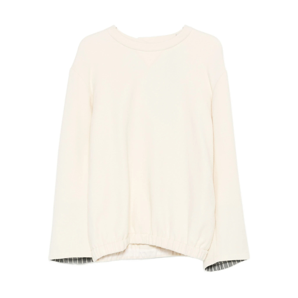white round neck long sleeves striped trim elasticated hem ribbed cuffs