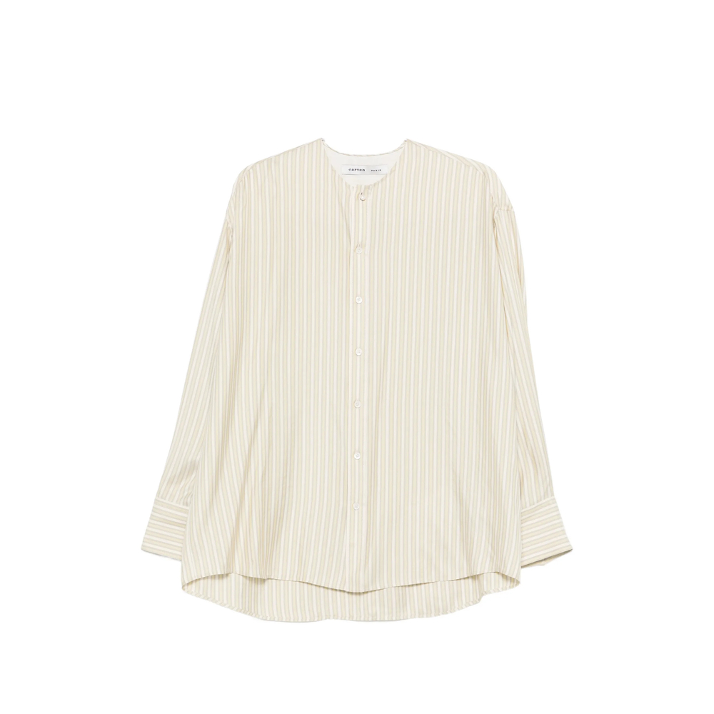 off-white striped pattern collarless button fastening long sleeves buttoned cuffs