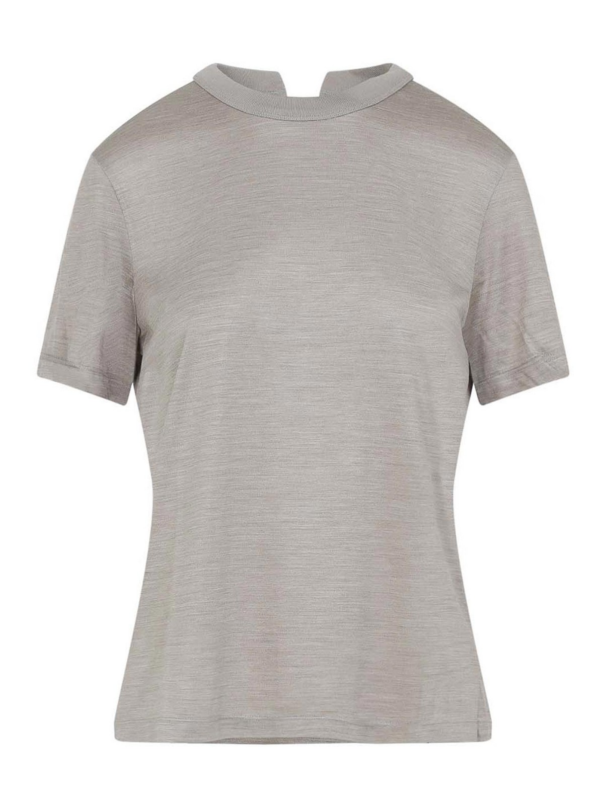 T-shirt cintré gris Carven, col rond gris avec encolure en V sur le panneau arrière, manches courtes, ourlet droit