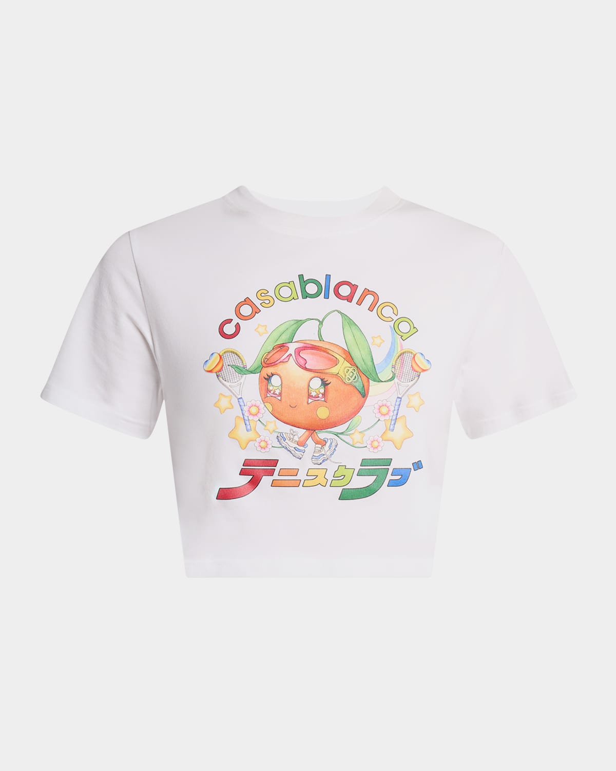 CASABLANCA Tshirt crafted of a soft pima cotton jersey, finished with a signature orange mascot graphic printed front Crew neckline Short sleeves Slim fit Cropped length Pullover style Pima cotton/elastane Hand wash, machine wash cold Made in Portugal