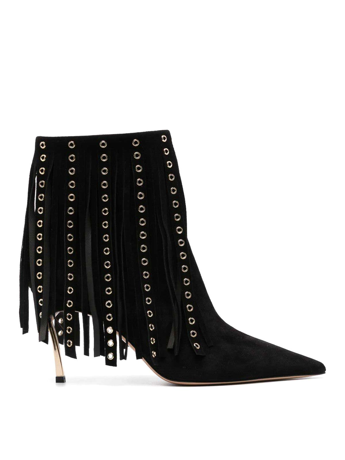 Fermeture éclair latérale noire à franges en mm au milieu, ornement à aillets, bout pointu