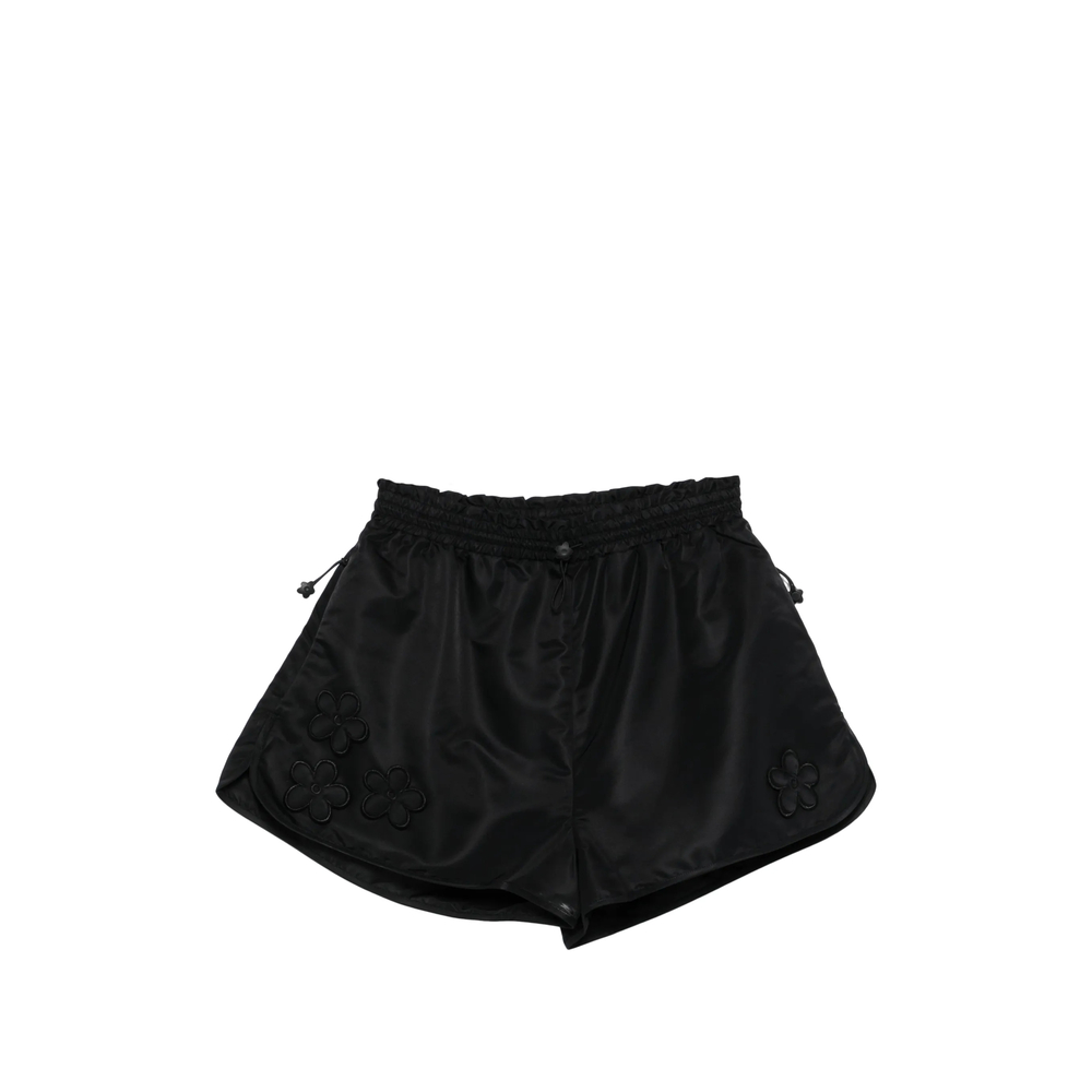 black floral appliqué drawstring fastening elasticated waistband tonal stitching