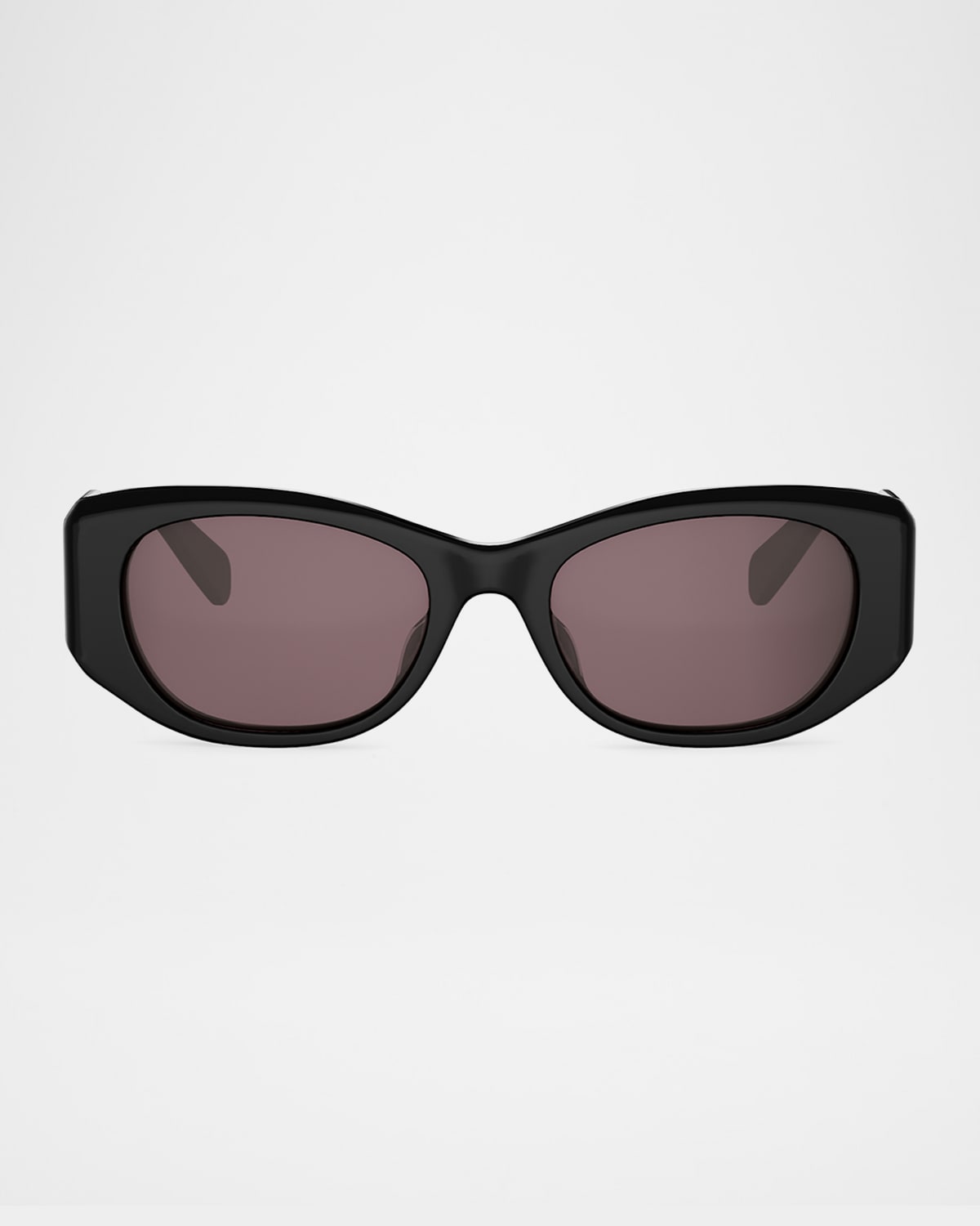 Celine rectangular sunglasses crafted of lightweight acetate Eye/bridge/temple (in mm): 5419140 Monochromatic lenses Saddle nose bridge Underlacquered logo on both temples 100% UVA/UVB protection Acetate Hand wash Made in Italy