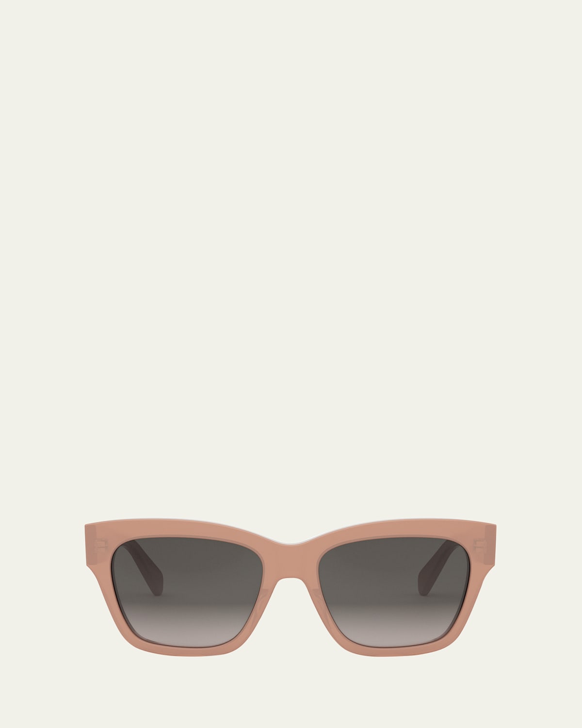 Celine "Triomphe" square geometric sunglasses in acetate, nylon, and polyamide Lens/bridge/temple (in mm): 5518140 Gradient lenses Saddle nose bridge Triomphe logo on temples Thin, tapered arms Hand wash 100% UVA/UVB protection Made in Italy