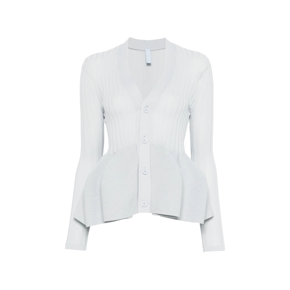 light blue ribbed knit button fastening V-neck long sleeves peplum hem