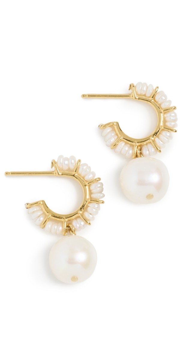 Freshwater cultured pearls. 18k vermeil. Post closure. Imported, Vietnam. Measurements: Length: 1in / 2.5cm