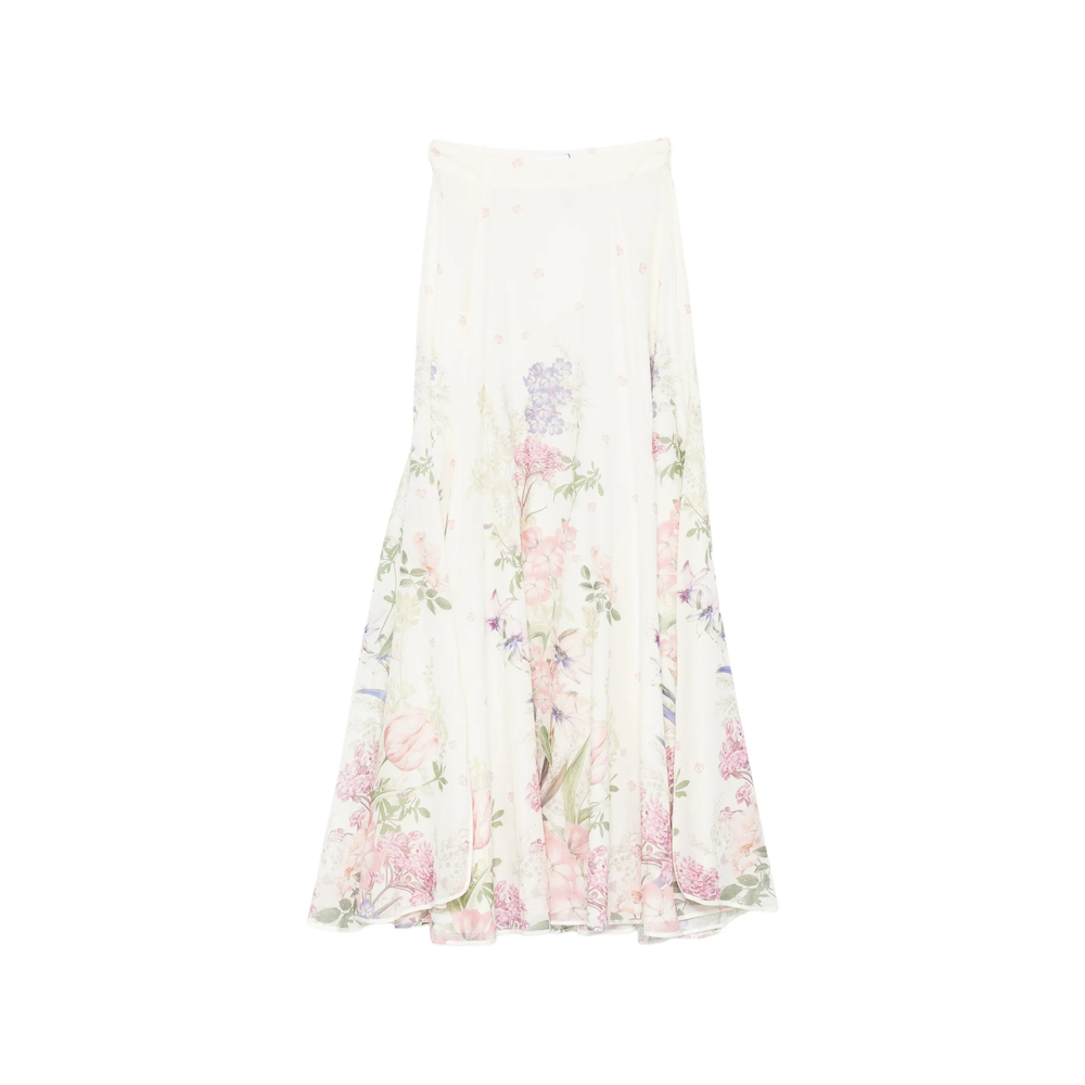 cream beige floral print high-waisted A-line concealed side zip fastening