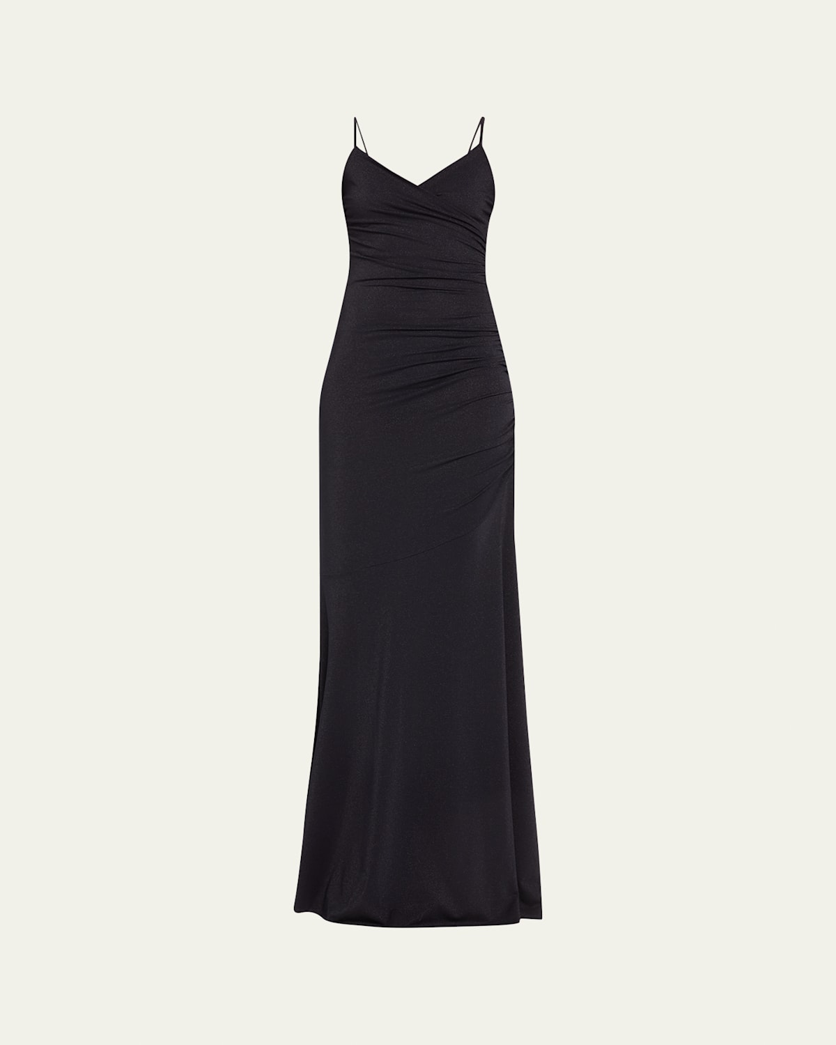 Chiara Boni La Petite Robe shimmer gown with ruching Approx. 65.5"L from shoulders to hem V neckline Sleeveless Full length Column silhouette Nylon/polyamide/elastane Made in Italy