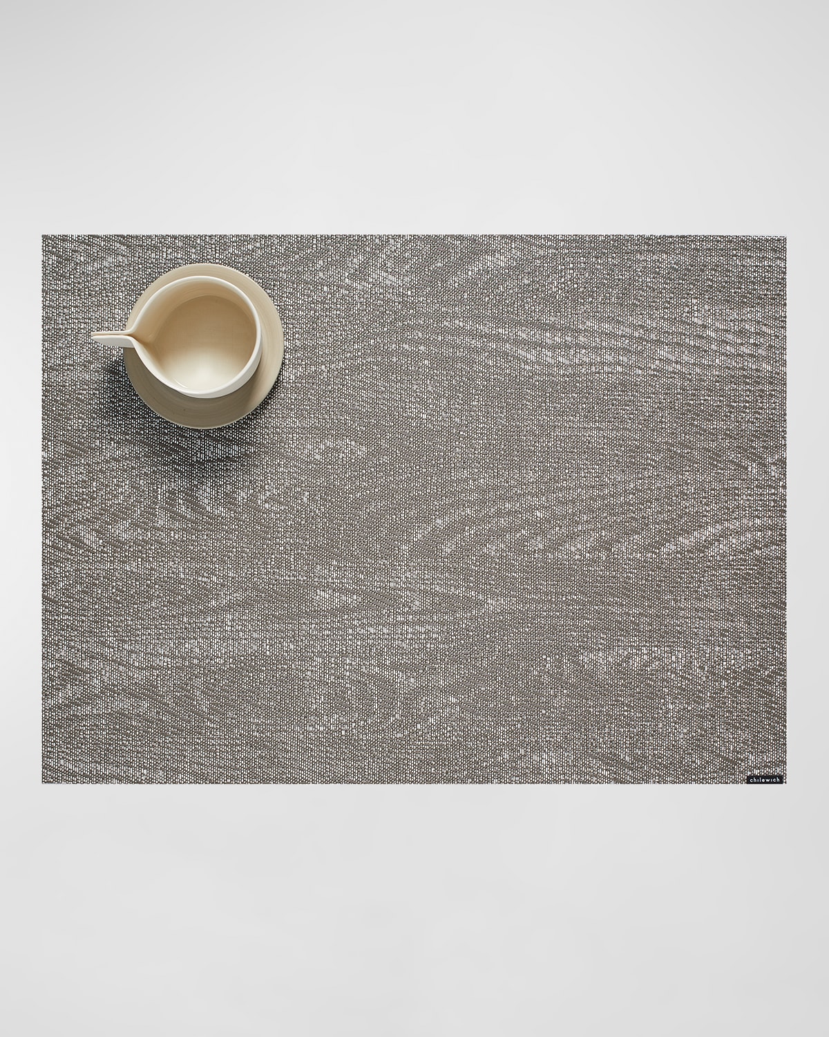A new voice in Chilewich's ongoing conversation with faux bois-the centuriesold art and craft of imitating wood-Woodgrain gains its distinctive look from faithfully recreated patterns initially formed by the burls, knots, growth rings, and other natural variations that make each piece of wood unique. This weave was developed with a large, thoughtfully scaled repeat to enhance the continuity and organic quality of the tonal texture. Suitable for indoor and outdoor use Made with Microban® Free of phthalates Crafted of Terrastrand® vinyl and polyester Approx. 19"L x 14"W Sold individually Do not iron, hand wash Made in USA