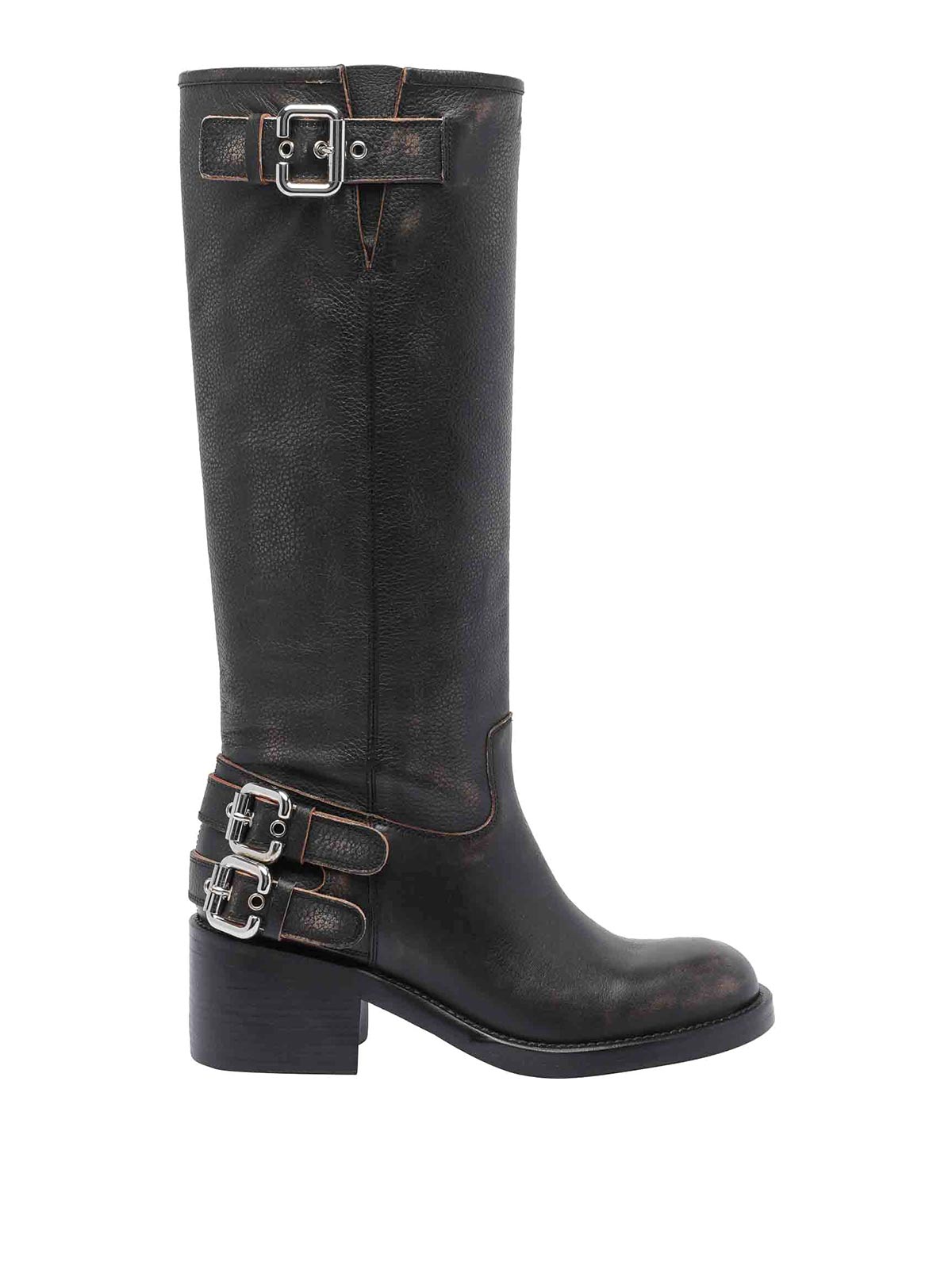 Bottines Dakota noires Chloé, bout rond, détail de boucles latérales, dessus en cuir, modèle haut