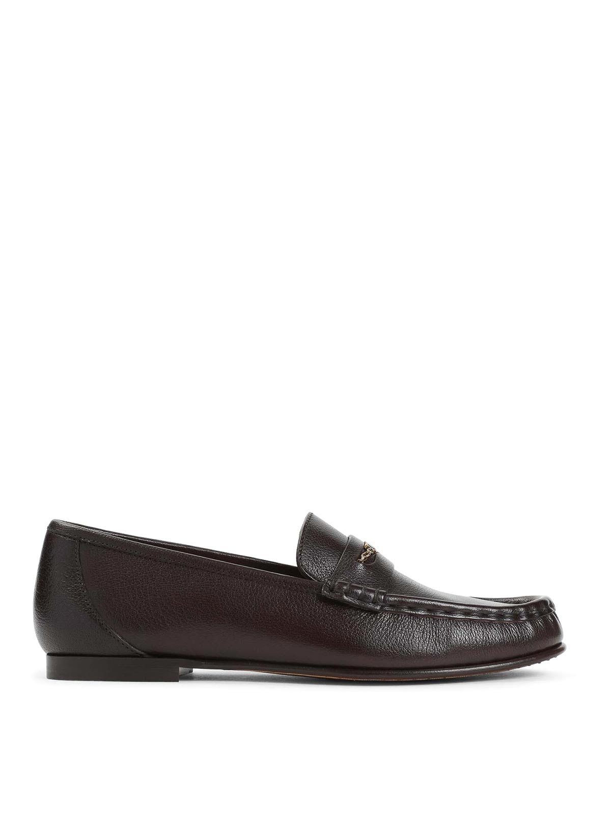 Mocassins Chloé marron suie pur Mocassins à bout rond, haut à fente en forme de centime, logo, surpiqûres ton sur ton