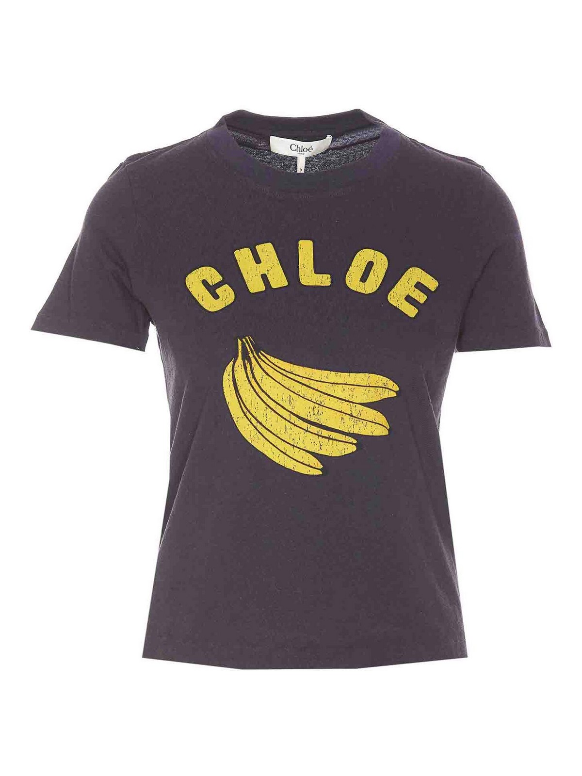 T-shirt gris Chlo à col rond avec logo imprimé sur le devant et imprimé banane
