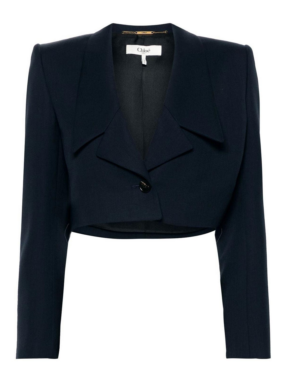 Épaulettes à revers en pointe bleu marine, manches longues avec poignets boutonnés, ourlet court et ourlet droit