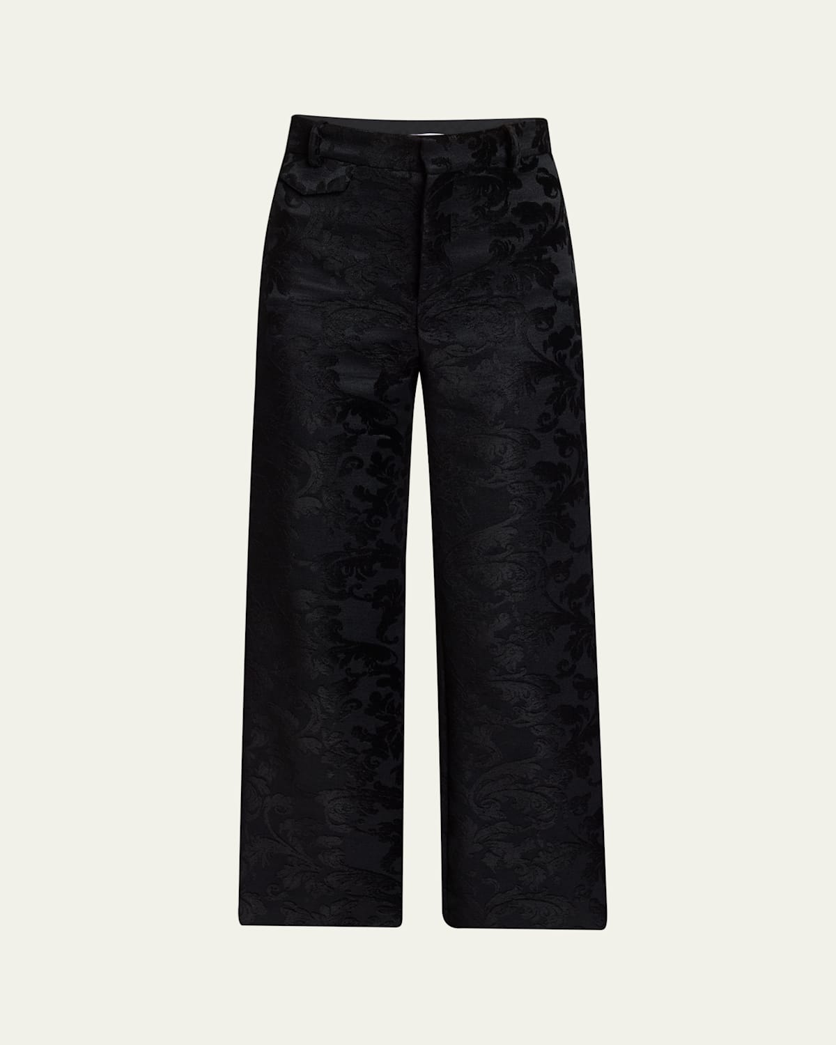 Chloe pants in baroque jacquard High rise Back welt pockets Hip flap coin pocket Flared legs Cropped at the ankle Hook/zip fly; belt loops Viscose/cotton Lining: Silk Dry clean Made in Italy