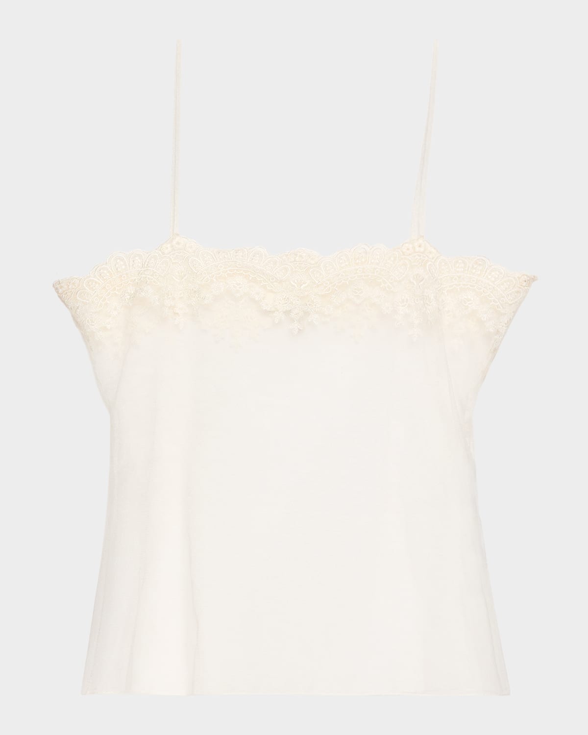 Chloe tank top in a sheer viscose mix with embroidered lace and fabriccovered buttons at the side Square neckline Thin straps Fitted Viscose/nylon/polyamide/polyester Imported