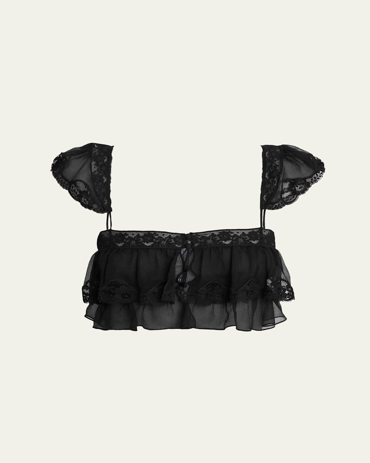 Suspended from delicate spaghetti straps, this blouse by Chloe is crafted from semisheer chiffon with delicate floral lace trim for a lingerieinspired design Square neckline Cap sleeves Ultracropped hem Buttonandloop front closures Silk/cotton/nylon/polyamide Dry clean, professional cleaning recommended Made in Italy