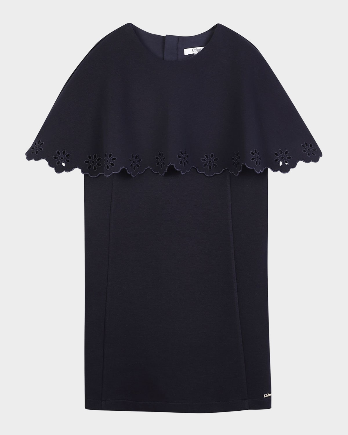Inspired by womenswear, the Chloe Milano dress features cape sleeves with hemstitched floral embroidery and a goldtone metal logo plate above the hem Round neckline Cape sleeves Two slip front pockets Hem hits around the knee Shift silhouette Cotton/modal/elastane Lining: Cotton Machine wash cold Imported