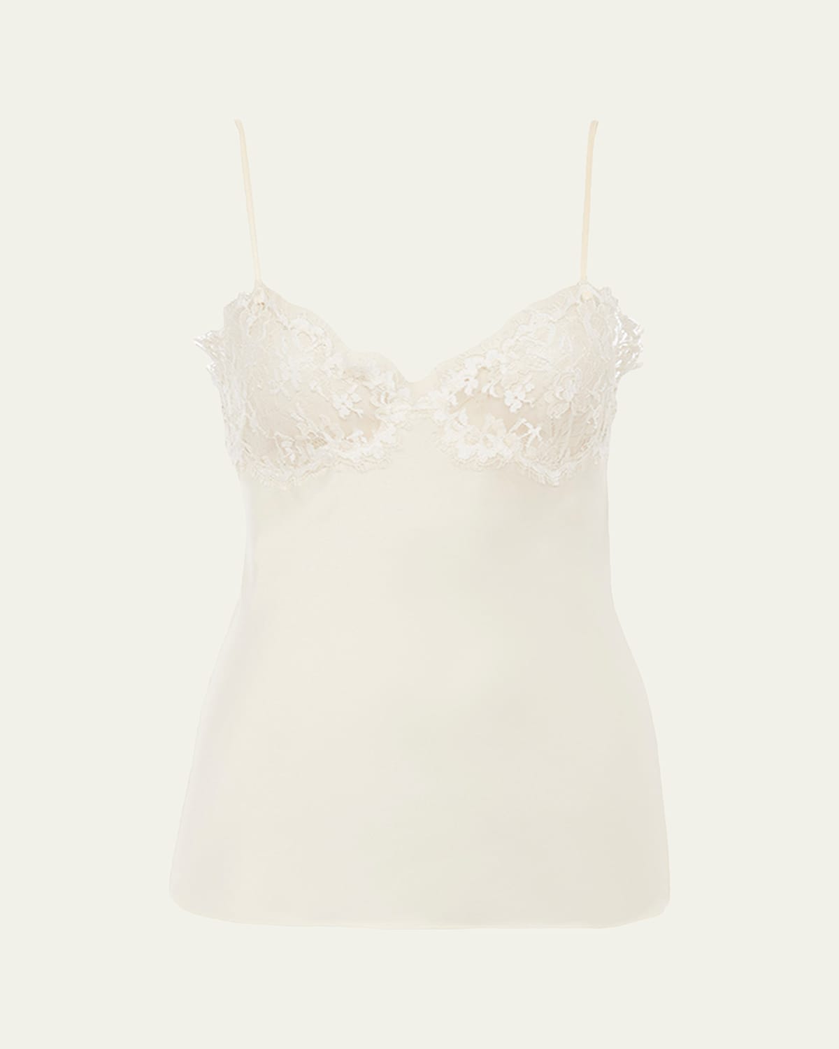 A whisperlight camisole top by Chloé is rendered in washed silk satin with delicate lace insets Sweetheart neckline Sleeveless Slim fit Pullover style Silk/cotton/nylon/polyamide Dry clean, professional cleaning recommended Made in Italy