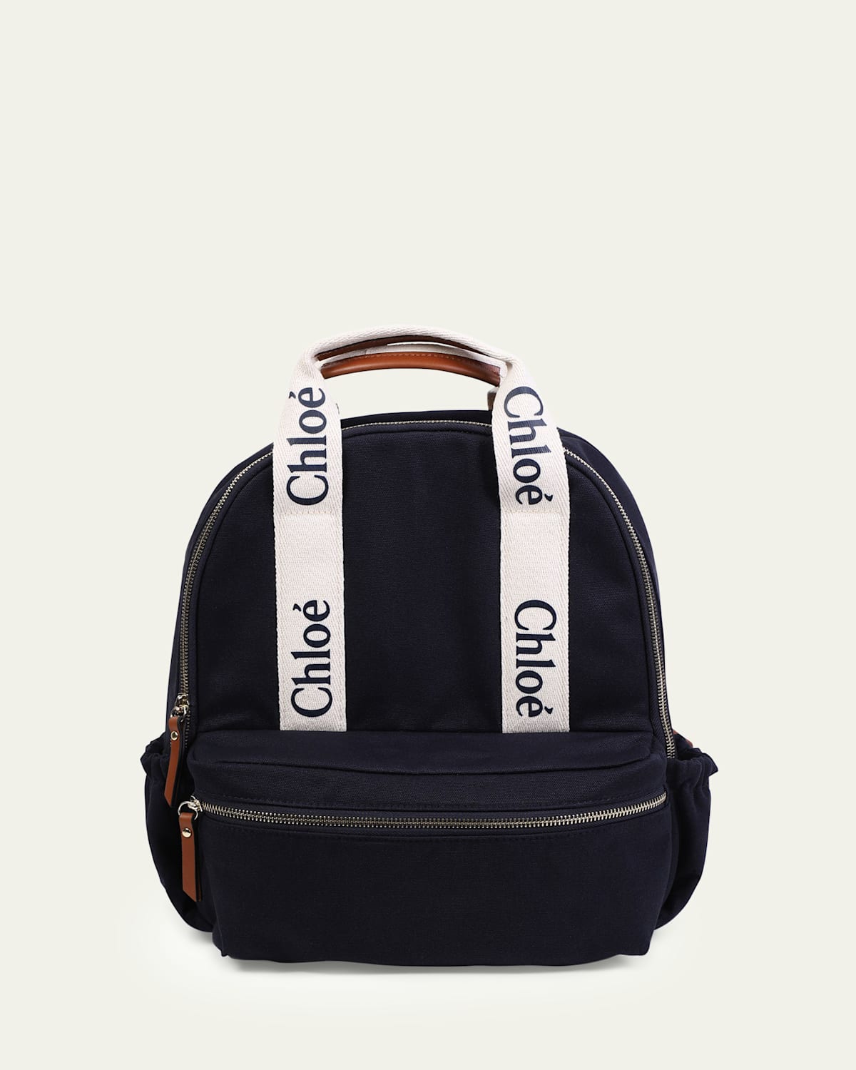 Chloe changing bag Rolled top handles with signature logo tape Zip top closure Detachable leather crossbody strap, 32.6"L Stroller attachments Interior zip pocket Side slip pockets Includes a changing mat and matching pouch Cotton Imported