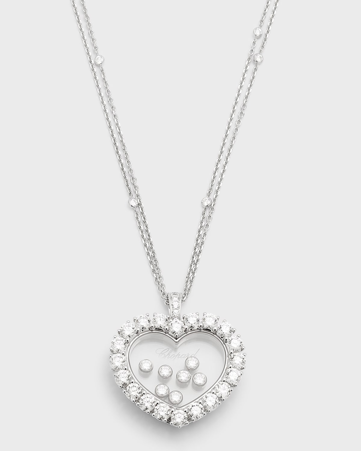 Chopard "Happy Diamonds" heart pendant 18karat white gold 5.2 total diamond carat weight Made in Germany Care Instructions: Wash with a nonchemical liquid soap. Rinse piece under water, avoiding any stones.