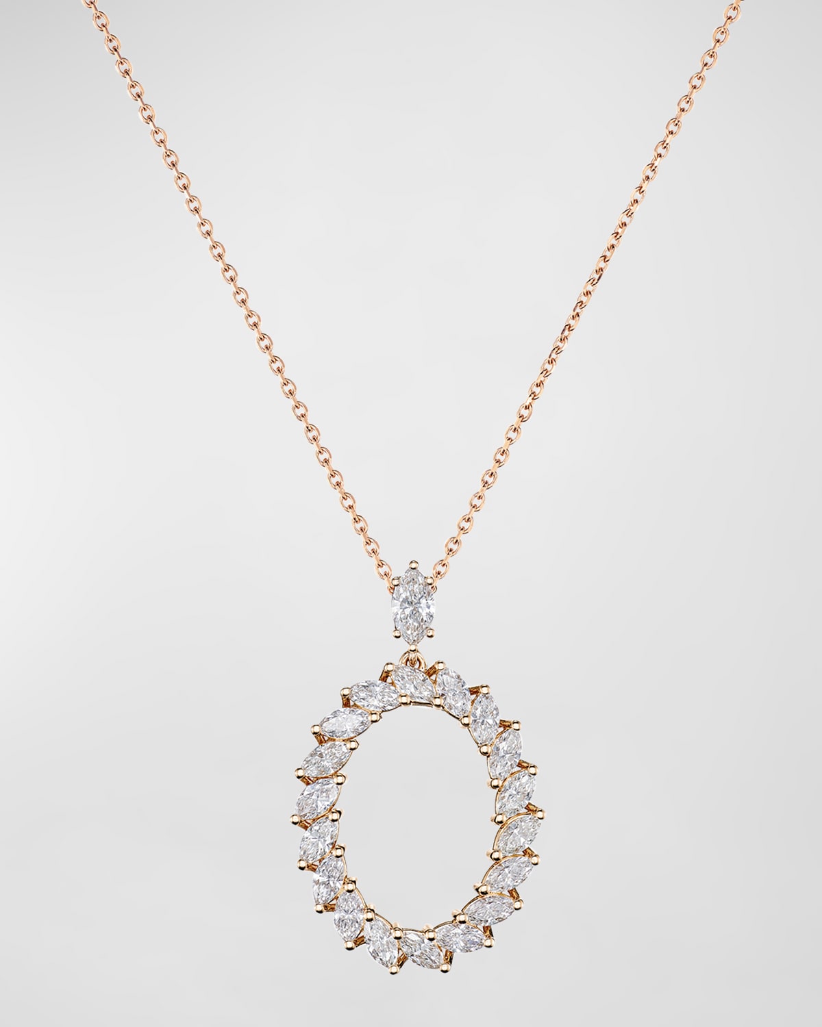 Chopard oval pendant necklace from the L'Heure du Diamant collection Approx. 1820" length 18karat rose gold Marquisecut white diamonds Total carat weight: 3.3 Adjustable length Lobster clasp Made in Germany Care Instructions: Wash with a nonchemical liquid soap. Rinse piece under water, avoiding any stones.