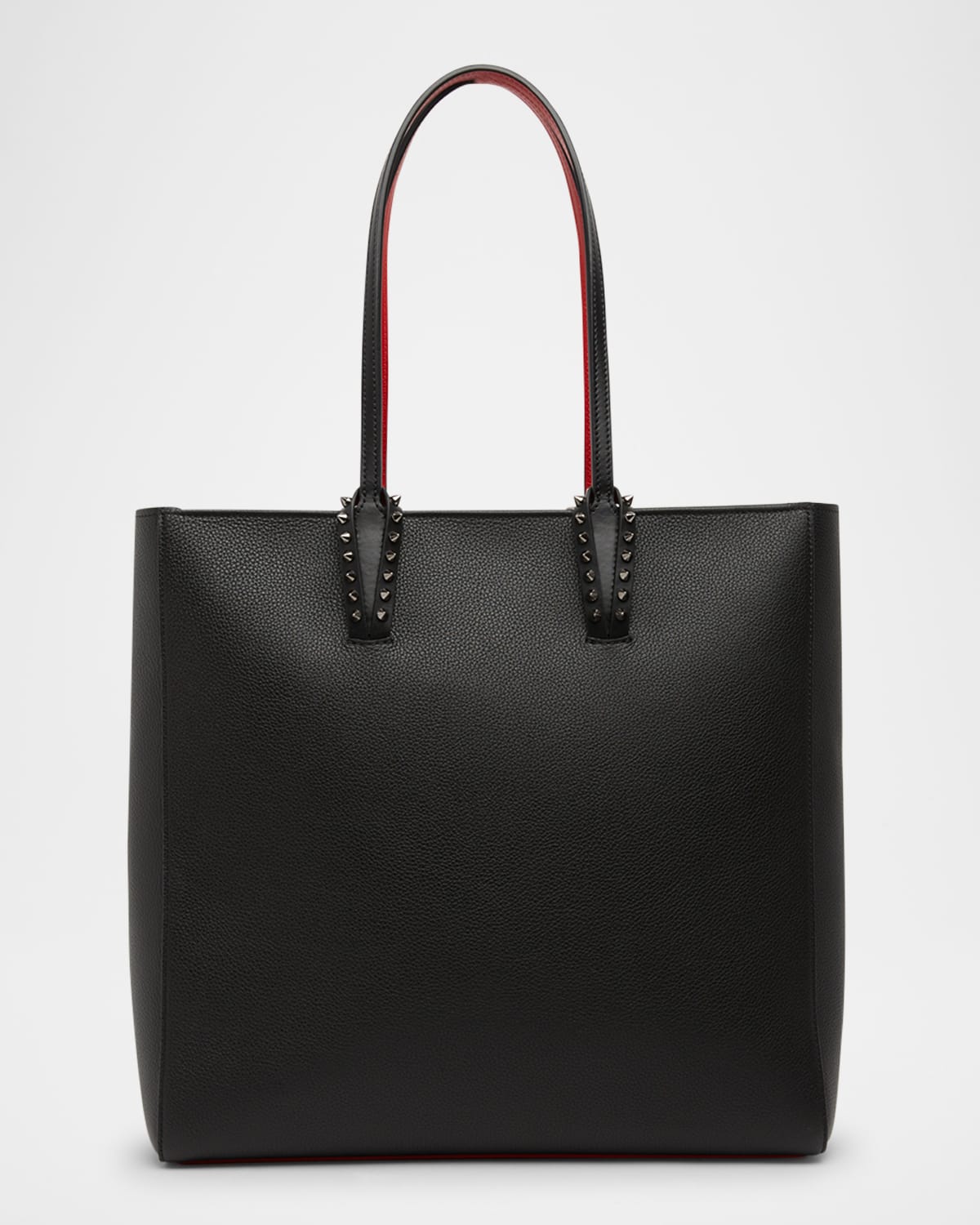 Christian Louboutin "Cabata" northsouth tote bag in leather Shoulder straps with empire spikes Zip top closure Signature red lining Lining: Leather/cotton Approx. 15.8"H x 13.8"W x 5.5"D Made in Italy