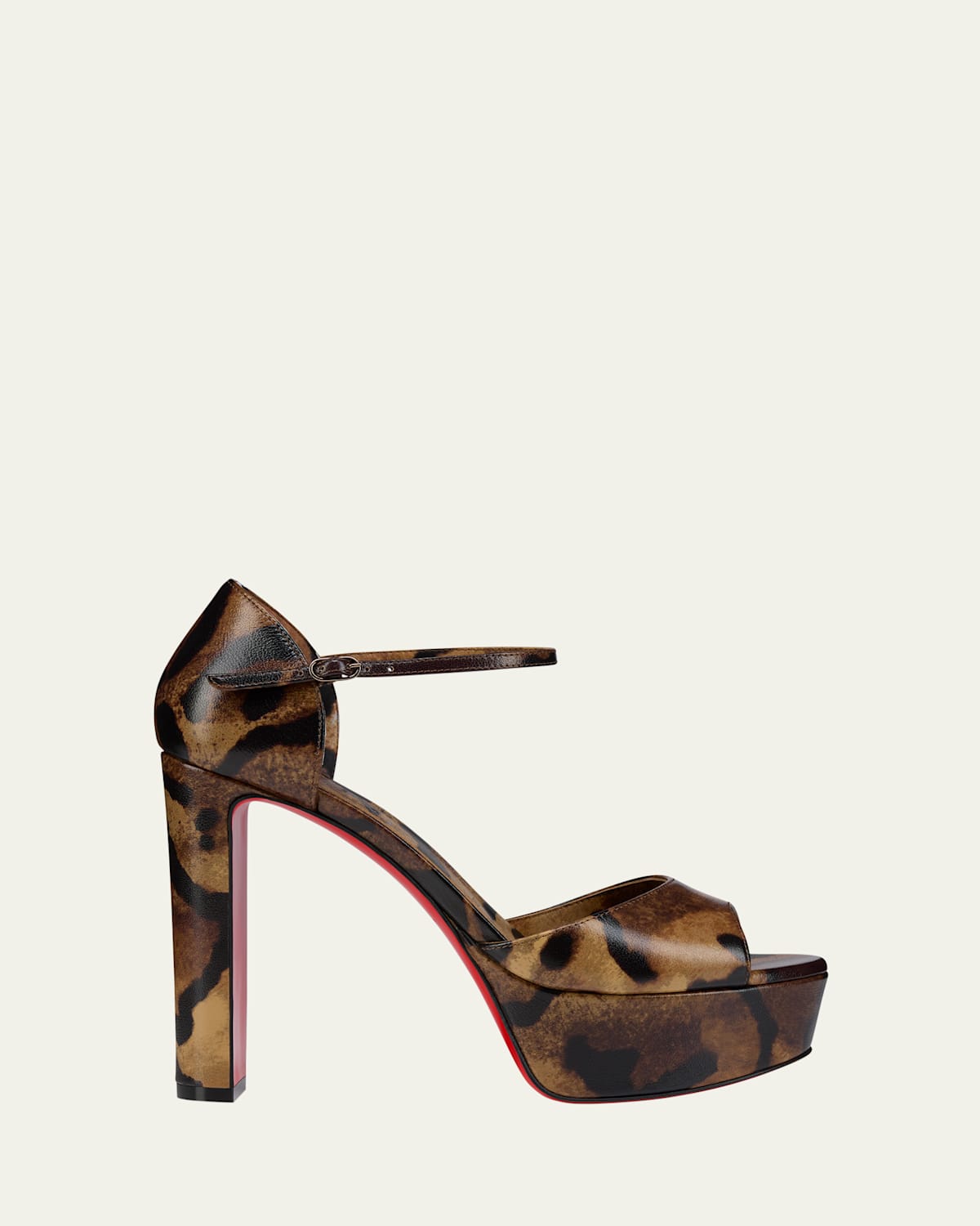 Updated in a leopardprinted variation, the "Sandaloo" platform sandals by Christian Louboutin are crafted from smooth Italian calf leather 5.25 in / 130 mm block heel Open toe Adjustable ankle strap Signature Louboutin red leather outsole Made in Italy