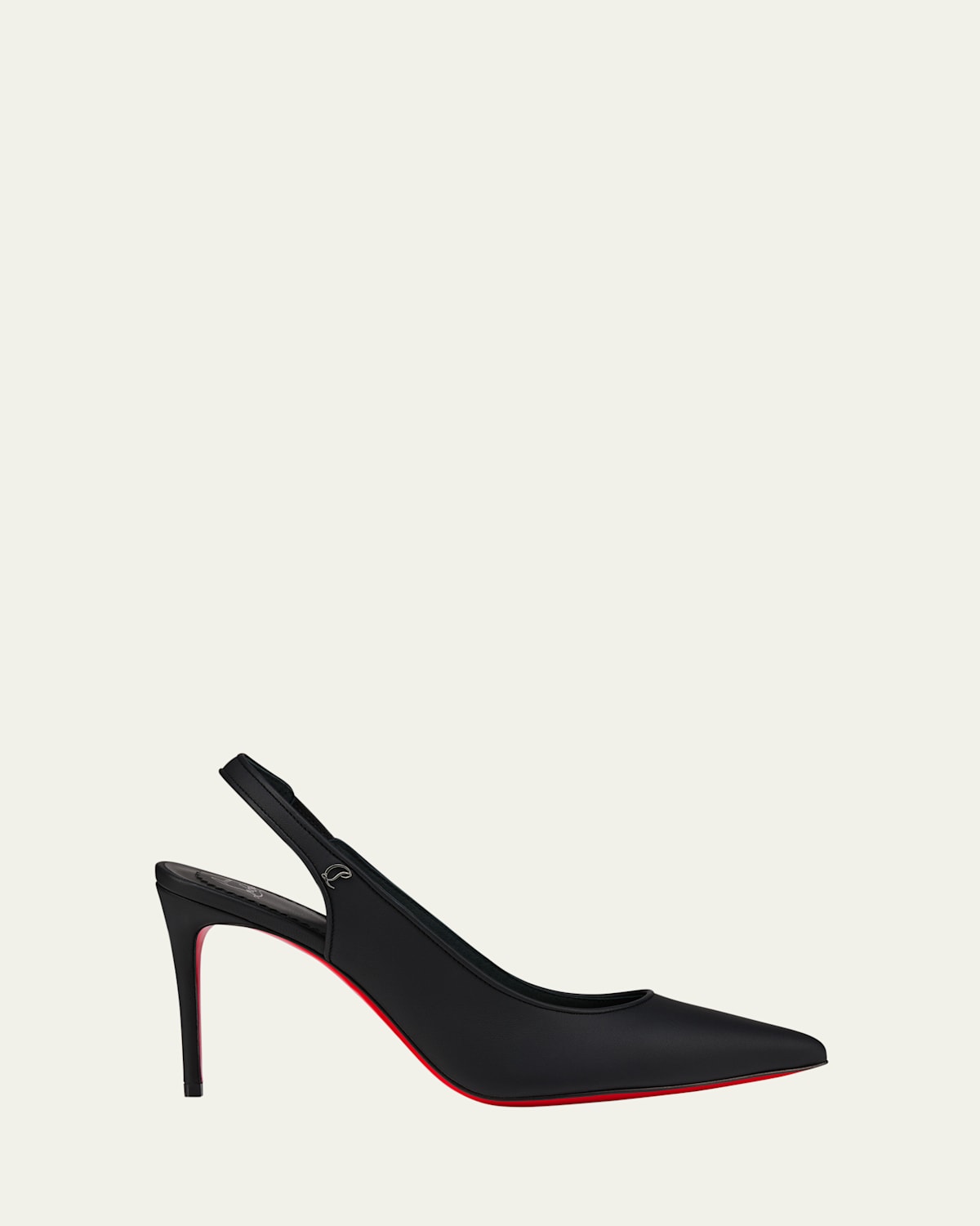 Christian Louboutin "Sporty Kate" soft calf leather pumps 3.25 in / 85 mm stiletto heel Pointed toe Stretch slingback strap Lining: Leather Signature red leather outsole Made in Italy