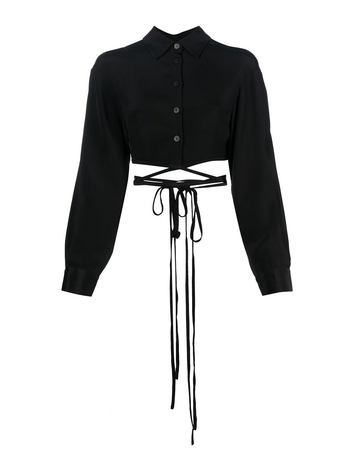 Chemise courte à manches longues en soie de Christopher Esber avec bretelles à nouer en soie noir de jais, col classique, fermeture boutonnée sur le devant, manches longues, poignets boutonnés et court