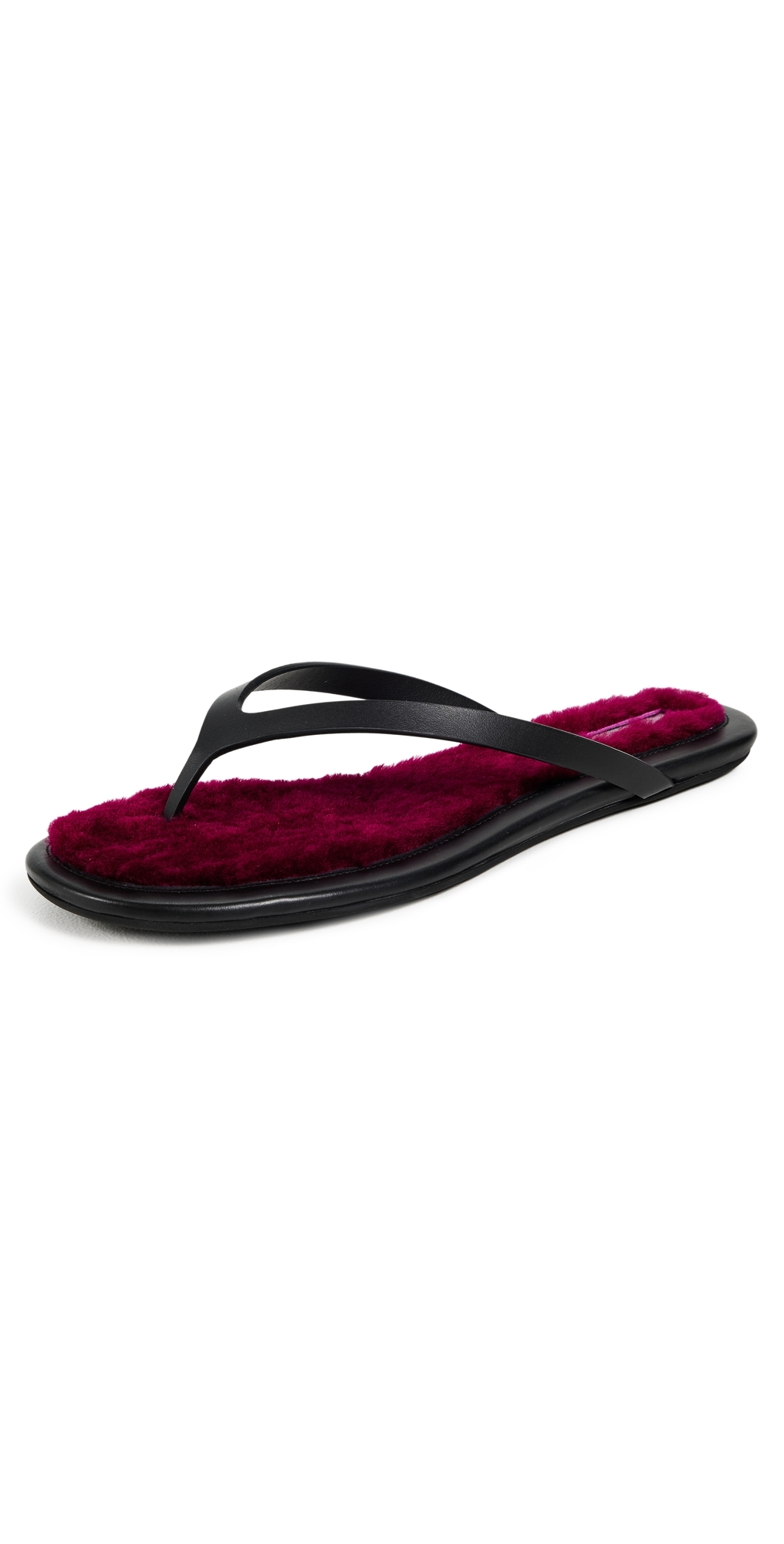 Dyed sheep shearling, from Italy. Upper: Calfskin. Lining: Unlined. Slip on. Open toe. Rubber sole. Made in Italy. This item cannot be gift-boxed.