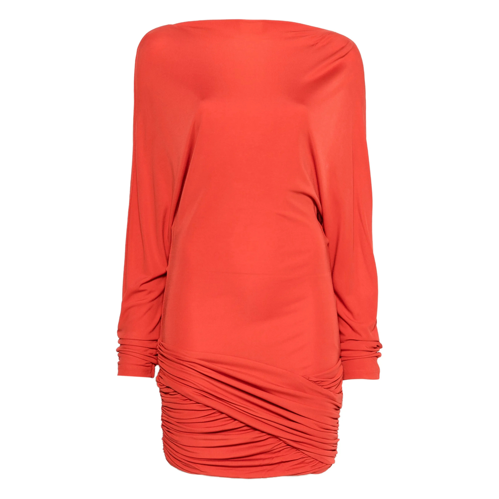 orange draped detailing long sleeves boat neck above-the-knee length fitted skirt