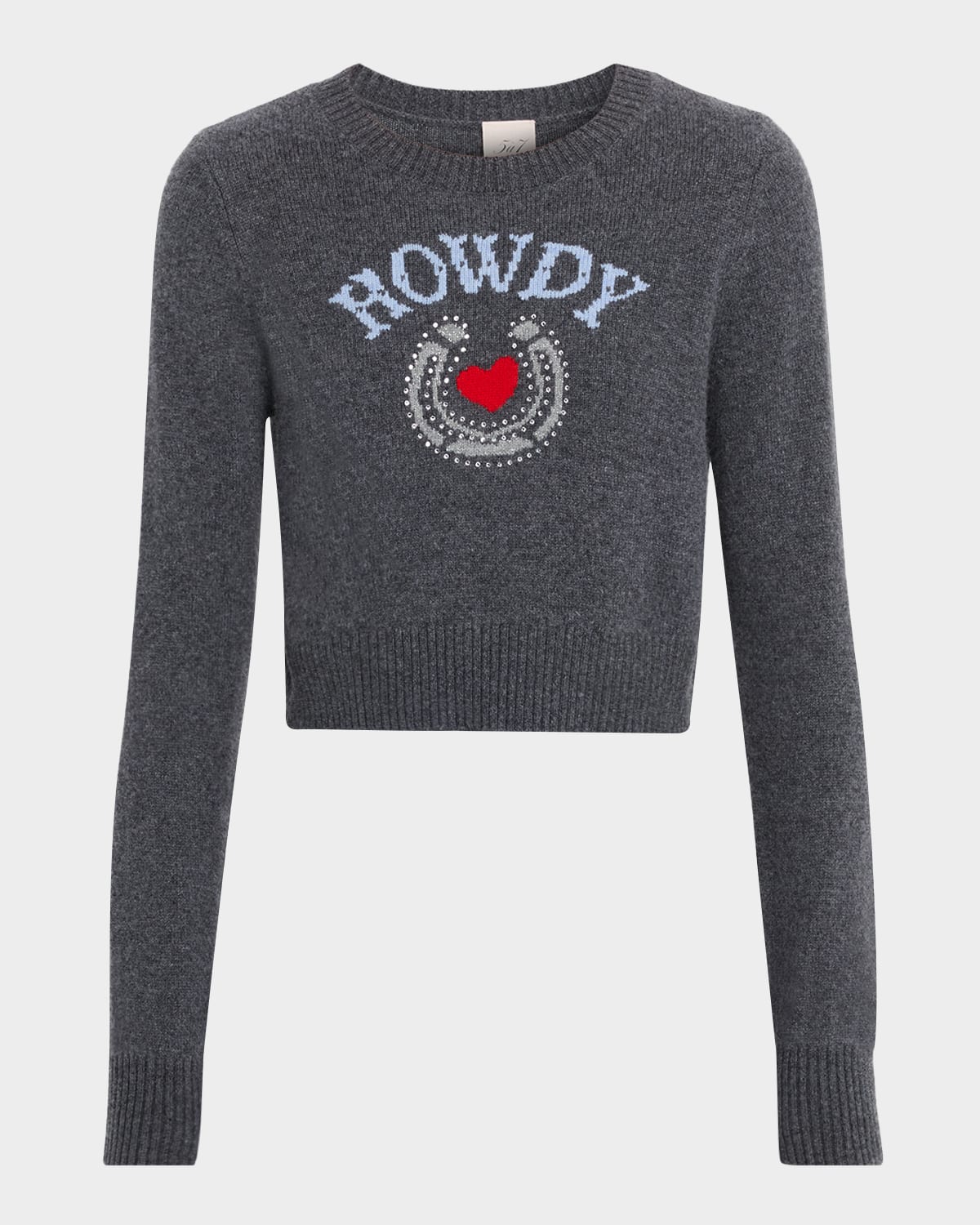 Cinq á Sept woolblend sweater accented with a graphic print and crystal embellishment Crew neckline Long sleeves Cropped fit Pullover style Wool/cotton/Amni® nylon Dry clean Imported