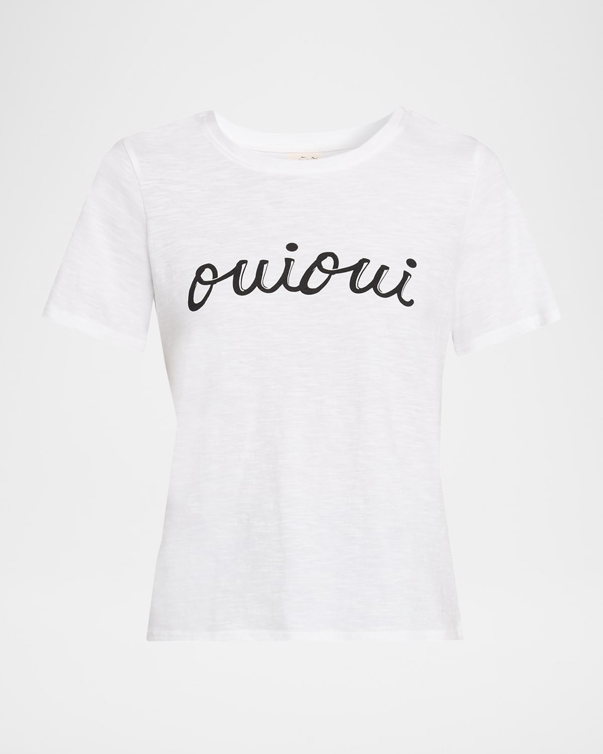 Cinq a Sept classic cotton graphic tee Crew neckline Short sleeves Easy fit Hem falls to the hip Pullover style Cotton Machine wash Made in USA