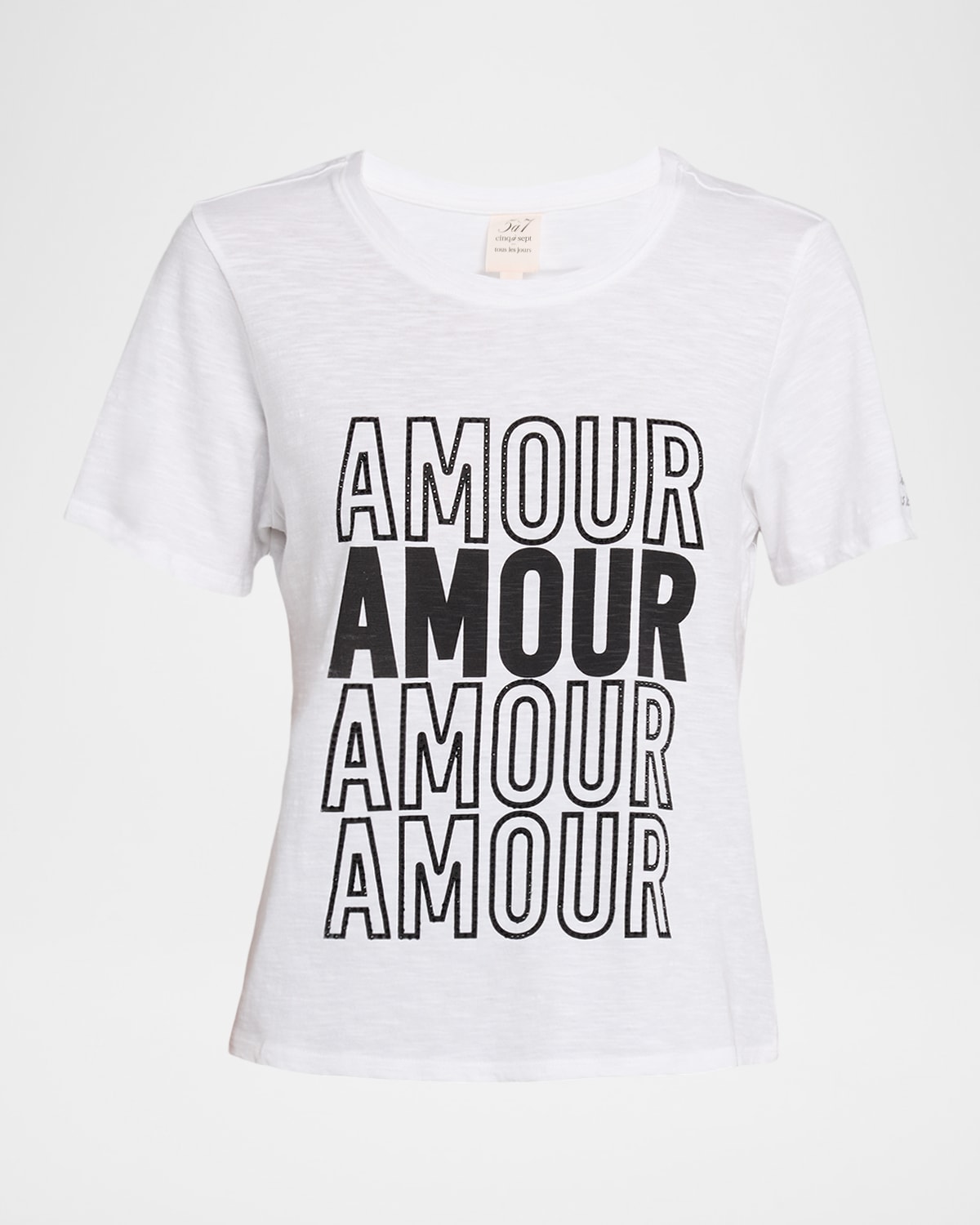 Cinq á Sept tonal rhinestoneembellished graphic tee Crew neckline Short sleeves Easy fit Hem sits at the hip Pullover style Cotton Machine wash cold, inside out Imported