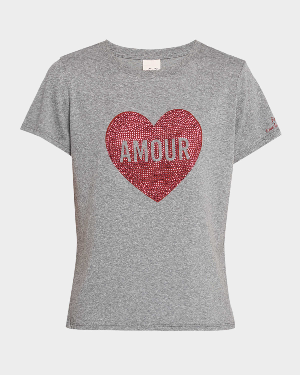 Cinq á Sept graphicprint tee with heatset embellishment Crew neckline Short sleeves Easy fit Hem falls to the hip Pullover style Polyester/cotton Machine wash inside out Made in USA